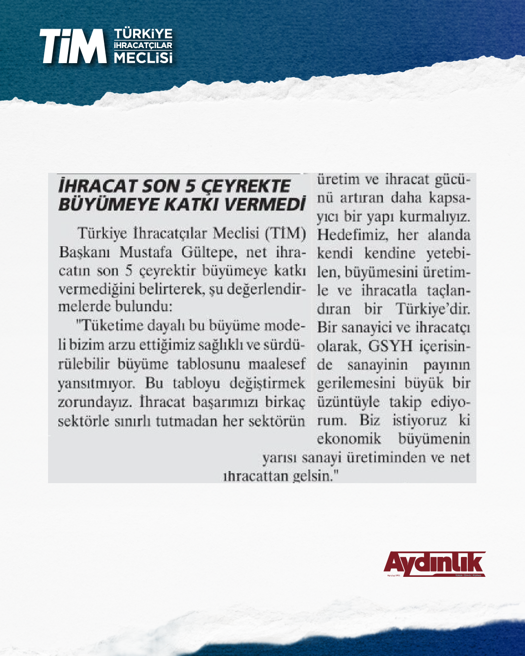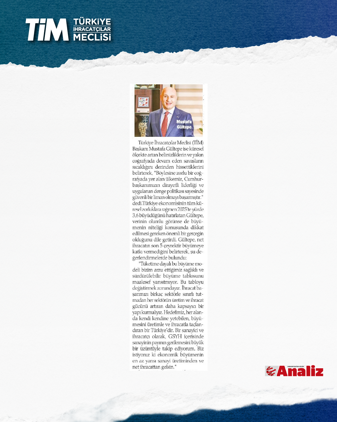 TİM BAŞKANI MUSTAFA GÜLTEPE: HER SEKTÖRÜN GÜCÜNÜ ARTIRAN BİR YAPI KURMALIYIZ
