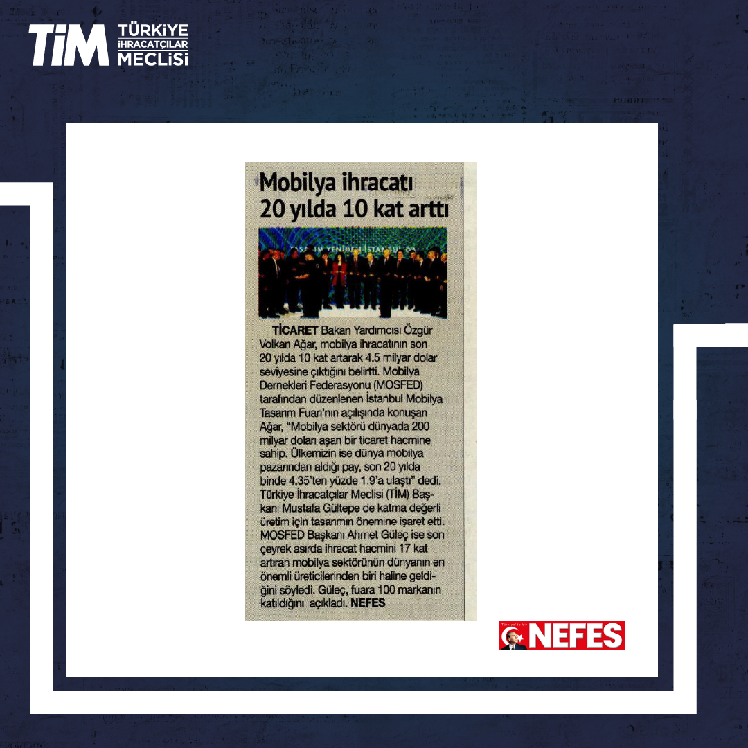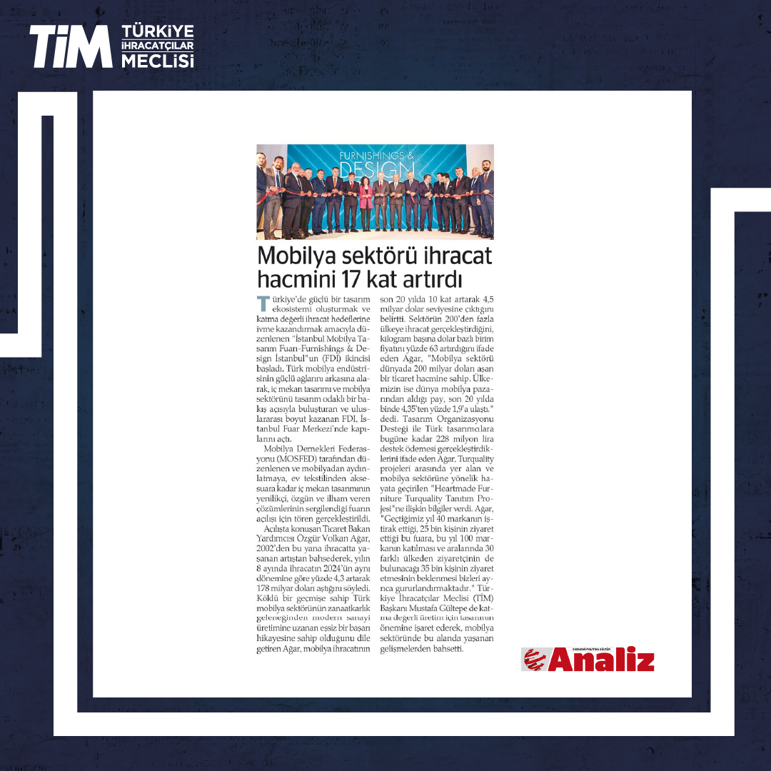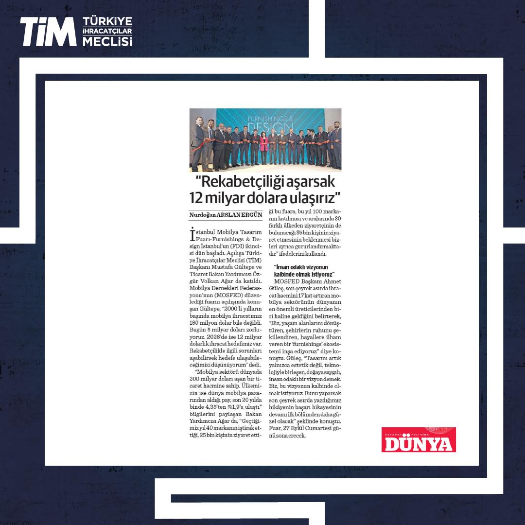 TİM BAŞKANI MUSTAFA GÜLTEPE: MOBİLYADA İHRACAT HEDEFİ 12 MİLYAR DOLAR
