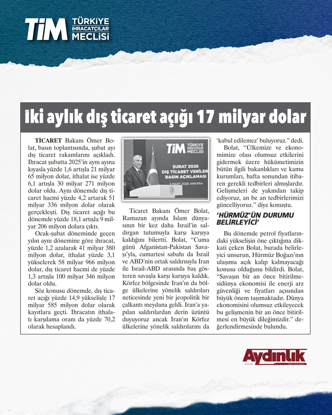 Ocak 2026 Dış Ticaret Verileri Basın Açıklaması - 3 Ocak 2026