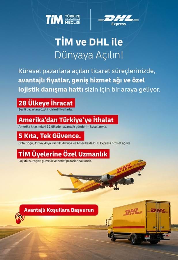 TİM ile DHL Express Türkiye arasında imzalanan iş birliği protokolü kapsamında; Orta Doğu, Afrika, Asya Pasifik, Avrupa ve Amerika kıtalarında yer alan seçili 28 ülkeye yönelik ihracat gönderilerinde ve ayrıca Amerika kıtasındaki seçili 12 ülkeden Türkiye'ye yapılacak ithalat gönderilerinde, ihracatçılarımıza özel olarak yüzde 61'e varan indirimler uygulanmaya devam ediyor.